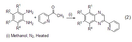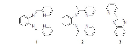 鄰苯二胺與2-吡啶甲醛反應(yīng)時(shí)得到的是N4席夫堿配體1[1],但是當(dāng)把2-吡啶甲醛換成2-乙?;拎r(shí),以氯甲酸甲酯為催化劑,在異丙醇中反應(yīng)沒(méi)有得到相應(yīng)的N4席夫堿配體2,而是得到了苯并六元環(huán)產(chǎn)物即2-(2′-吡啶基)喹喔啉3[2]。