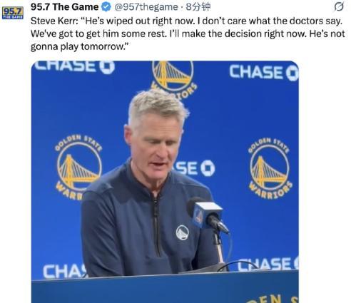 針對庫里感冒的問題,科爾說不管醫生怎么說,他決定明天對陣國王的比賽中,庫里休戰,不會登場比賽。